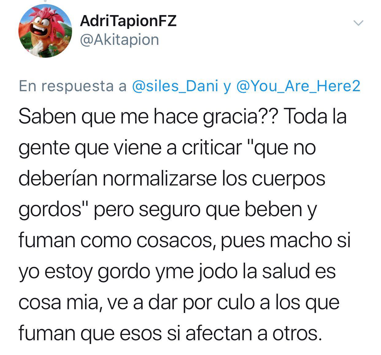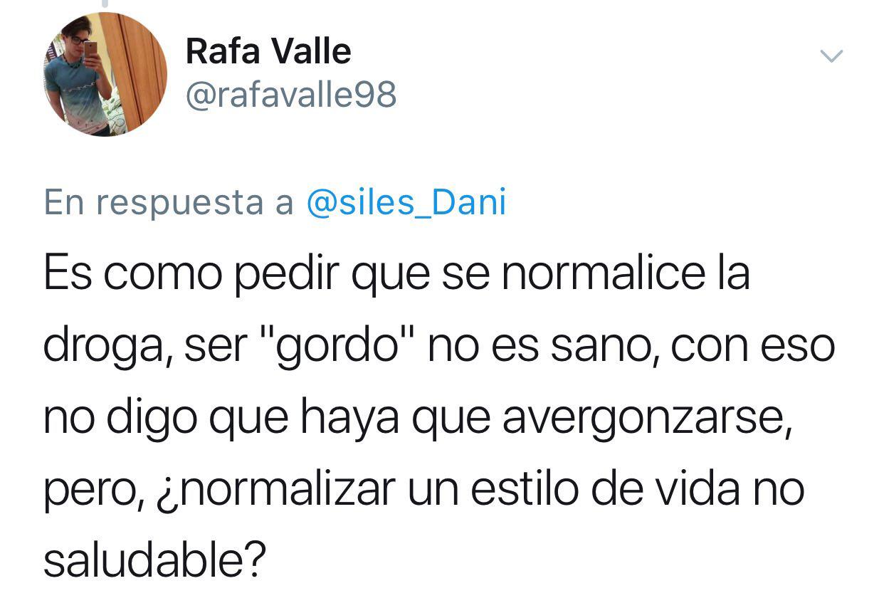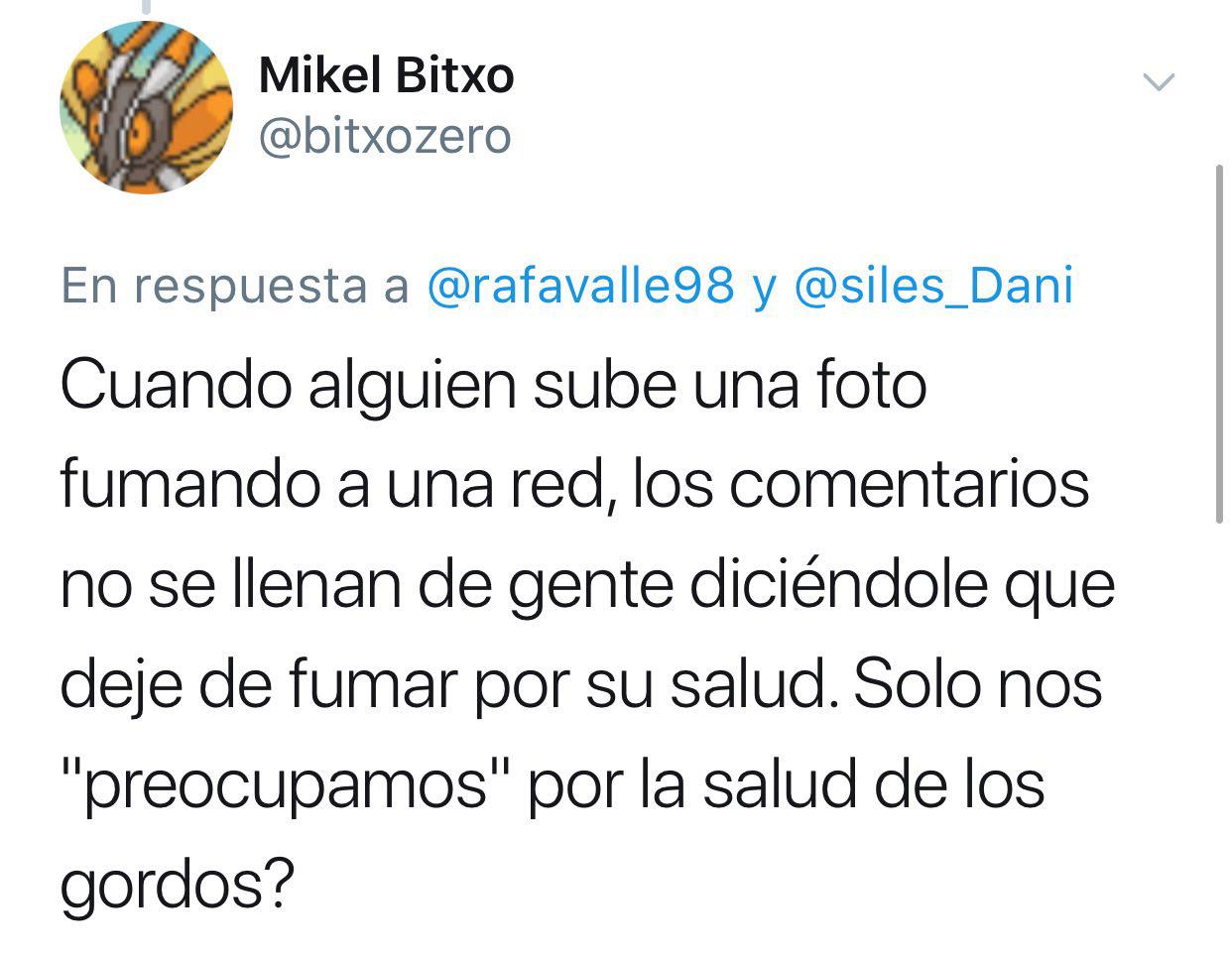 El problema es que esas respuestas hirientes no las lee sólo el autor de las fotos, que ya es bastante duro. Si no que las leen millones de personas que usan Twitter y que también tienen problemas con el peso. Al leerlas, hacen suyas esas críticas y se hunden un poco más cada vez.