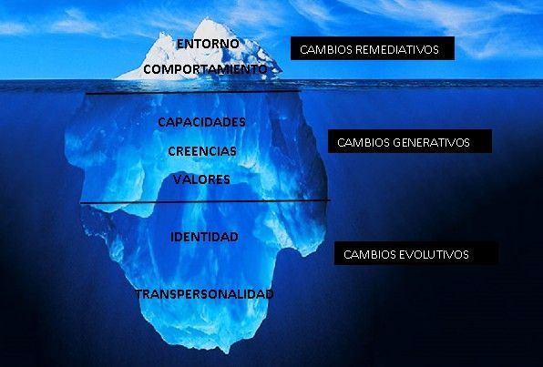 Y ¿por qué es tan importante para nosotros defender nuestras creencias y valores frente a los de otras personas? Porque forman parte de nuestra esencia e identidad como individuos. Son como los cimientos de nuestra casa, lo que nos hace ser como somos. Derribar una creencia es torpedear uno de los pilares que sustentan nuestra estructura. Y esto puede verse muy claramente en el iceberg que representa los niveles neurológicos de Dilts y Bateson, donde vemos las creencias y valores alojados en la parte no consciente.