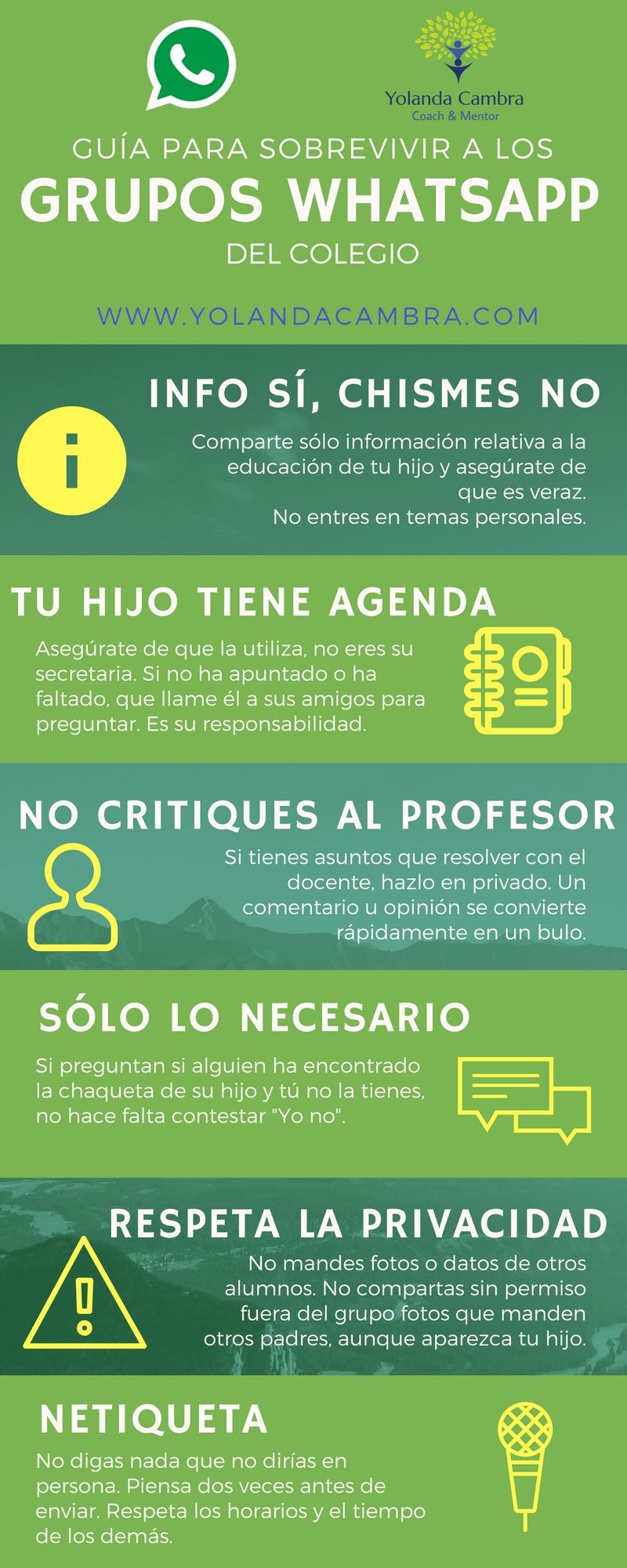 Te resumo más abajo estas sencillas reglas en una infografía que podrás descargar aquí Compartirla en tu grupo de whatsapp de padres del colegio, os puede evitar algún conflicto.
