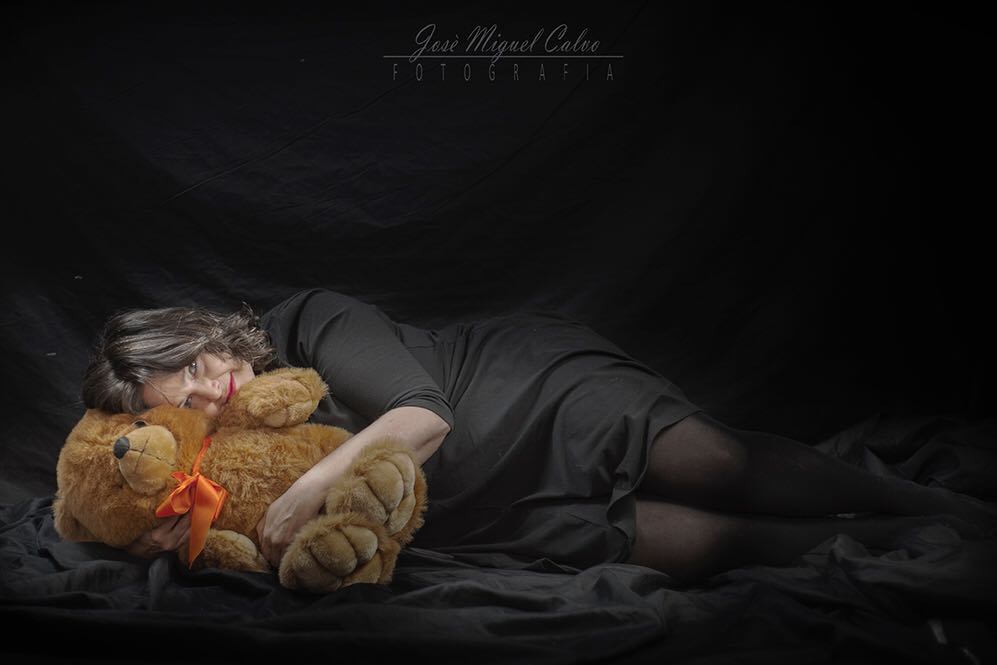 Os dejo un par de fotos del resultado. Mi favorita es la del oso. Ese oso de peluche era de mi madre y tiene un gran valor emocional para mí. Para esa foto quise quitarme la bisutería y hacerme pequeña, acurrucarme en el suelo abrazada a él y desdibujarme en el fondo para cederle a él el protagonismo. Si queréis ver más fotos de José Miguel Calvo podéis entrar aquí.